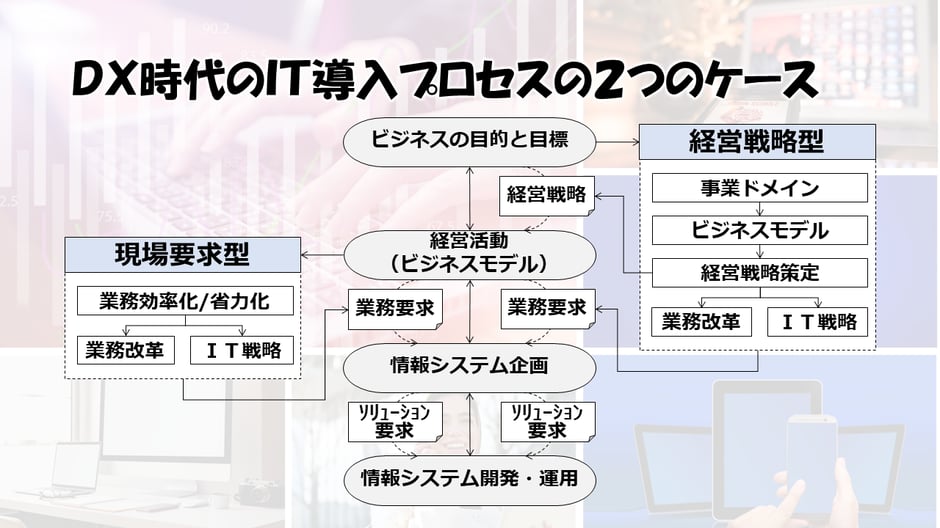 - 経営の視点(事業活動の存在意義)を得ながら、経営・業務・ITを融合させなければなりません。