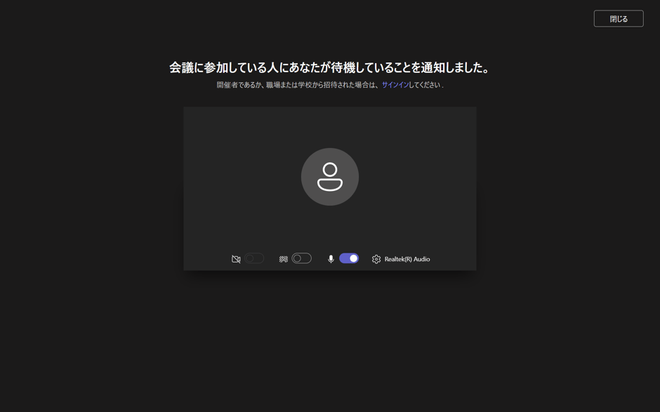7.「会議に参加している人にあなたが待機していることを通知しました。」と表示される。