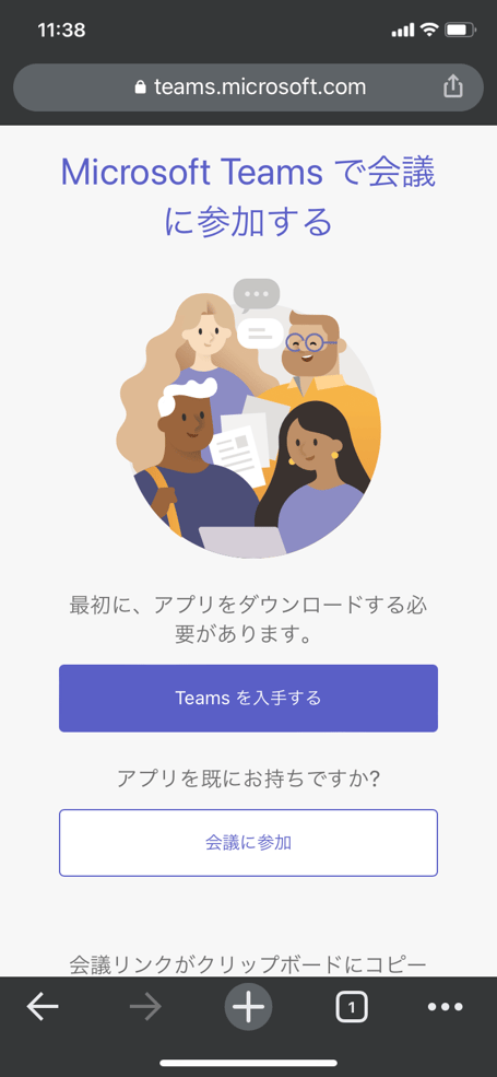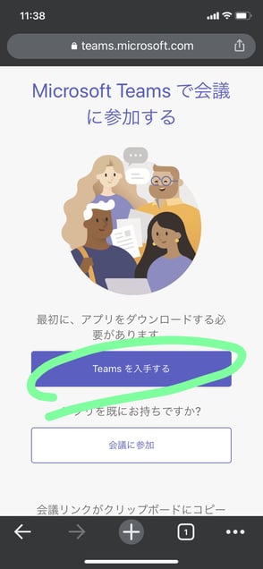3.[Teams を 入手する]を押す。